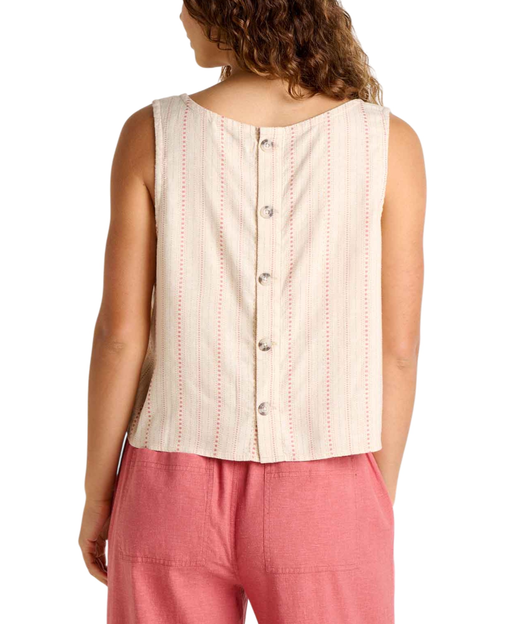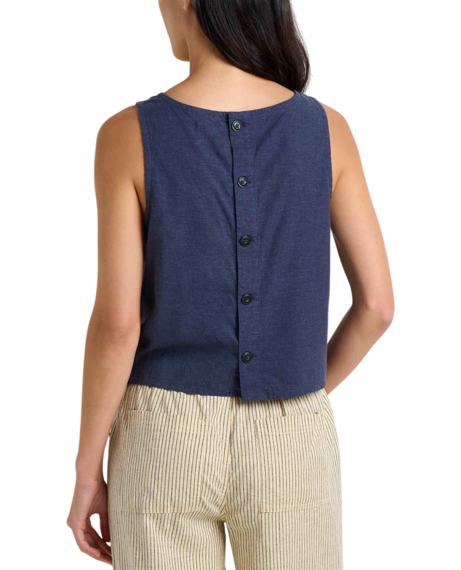 As light as a long day, this flowy tank top is made from hemp and TENCEL™ Lyocell for optimal durability, and its back buttons make it the perfect summer garment. Wear it on its own or layer it as you like.